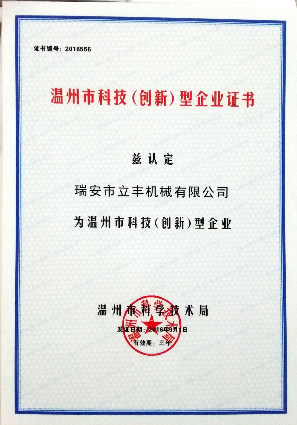 热烈祝贺瑞安市立丰机械有限公司被... 2016-11-09